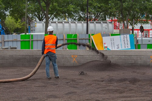 SOUFFLAGE DE BILLES D’ARGILE EXPANSEE SUR DALLE DE PARKING